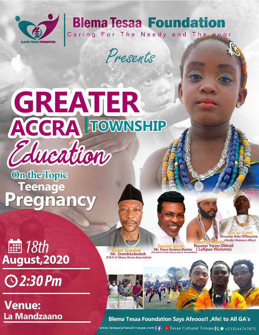 This event has passed30 Aug 2020Greater Accra Township Education: Teenage PregnancyAdd to CalendarBlema Tesaa Foundation is meeting together to discuss the issues around teenage pregnancy. Guest of honour LaKpaa Wulomo